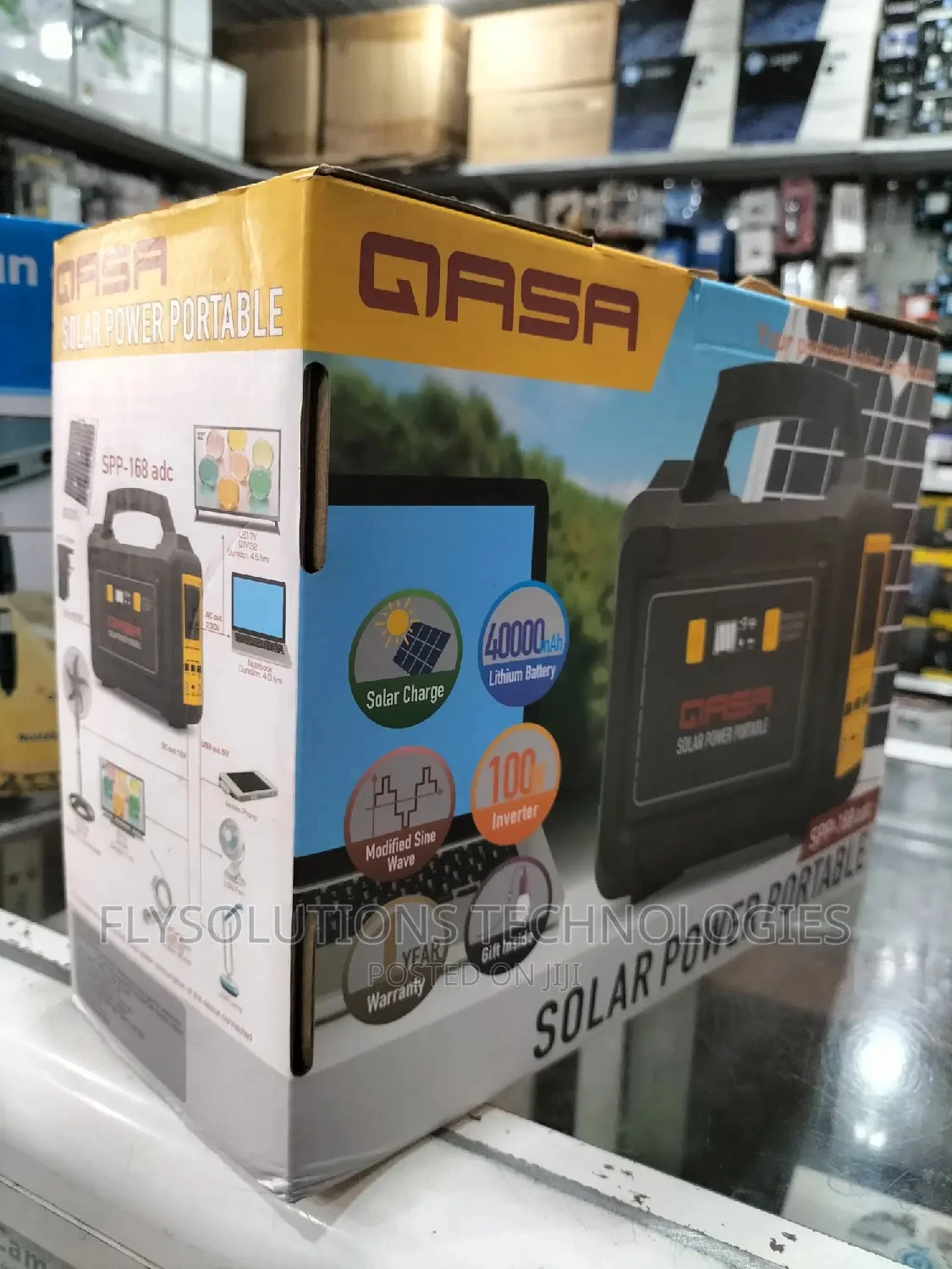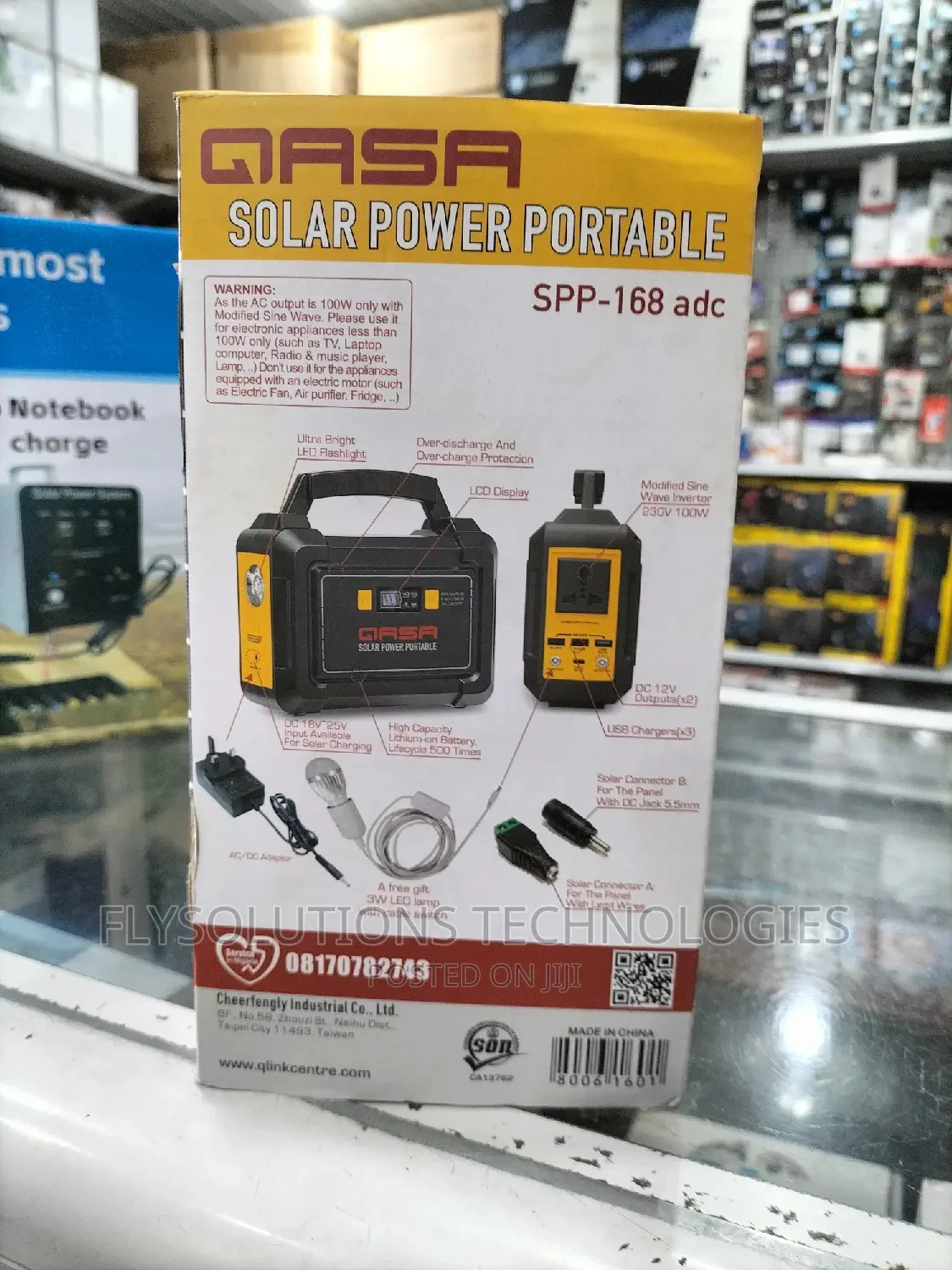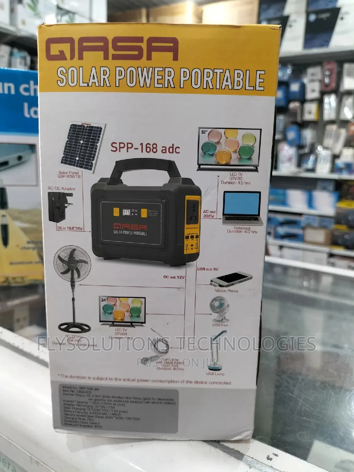 Qasa portable power- SPP 168 ADC (Solar Panel Not Include) We bring to you a simple home/Office Portable Solar Inverter Power Generator that you do not need to pay monthly for, it also has a plug Input for a laptop, TV, sound system, and AC/DC fan that you do not need to pay monthly for. |